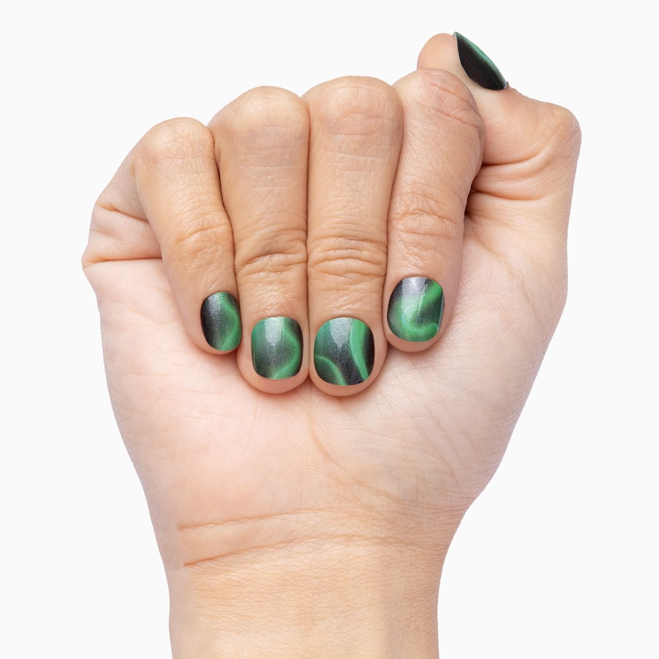 Make your manicure northern-lit with Aurora Dreams. This radiant nail wrap features pearlescent swirls of green and black. Want this aurora-ble look to last longer? Add a layer of top coat.